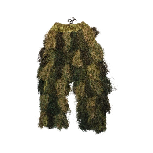 Designed for quick on-and-off use, the suit allows direct access to pockets underneath, making it ideal for layering in changing conditions. The dense ghillie material offers reliable camouflage in a variety of environments, from wooded terrain to brush-covered landscapes.