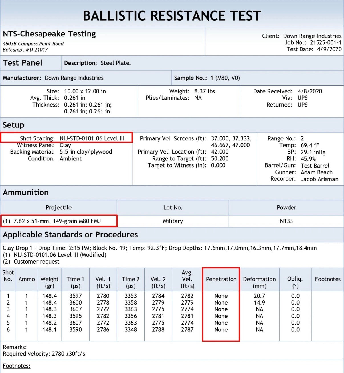 - Tested to defeat 6 rounds from 7.62 x 51 (.308) @ 2780 fps (see 3rd party ballistic lab results)